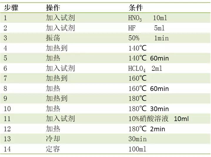 本實驗采用了兩種消解實驗方法,每種方法都做土壤質(zhì)控樣品平行三組,礦石質(zhì)控樣品平行三組。第一種為參考50ml消解管消解方法后開發(fā)的實驗方法;第二種為客戶自己在電熱板上的實驗方法轉(zhuǎn)換而來。